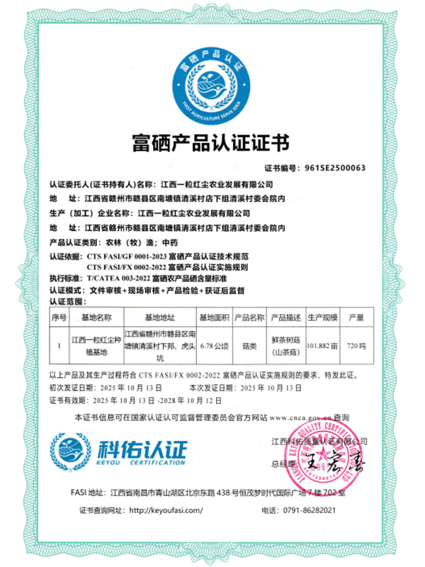 江西一粒紅塵農業發展有限公司是一家總部位于江西省贛縣的現代農業多元型企業,專注于食用菌的研發種植深加工、貿易、研教培、農文旅等全產業鏈發展。公司秉承“健康綠色共享共贏”的核心價值觀,致力于引領鄉村振興之路,旨在成為......
